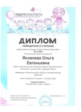 Я, Яковлева Ольга Евгеньевна, родилась 16 февраля 1976 года в п. Сонково Тверской области. В 1998 году закончила Ярославский педагогический колледж Ярославского педагогического университета им. К. Д. Ушинского. В 1995 году стала работать воспитателем в МДОУ « Детский сад № 1». В этой должности проработала 11 лет. С 2018 года работаю в МДОУ « Детский сад № 3» воспитателем младшей группы.