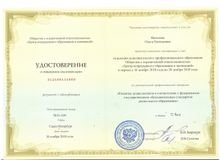 Придя на работу в ДОУ, прошла курсы повышения квалификации. Тема: «Педагогическое образование: педагог дополнительного образования детей и взрослых» г. Санкт – Петербург, профессиональную переподготовку Тема: «Развитие дошкольников в соответствии с федеральным образовательным стандартом дошкольного образования» г. Санкт – Петербург.