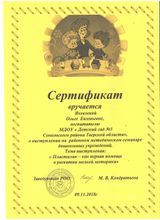 2. Семинар Тема: «Пластилинография – как первая помощь в развитии мелкой моторики» 2018 год